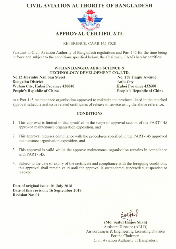 2019年11月 徑河廠區獲得CAAC、FAA維修許可。